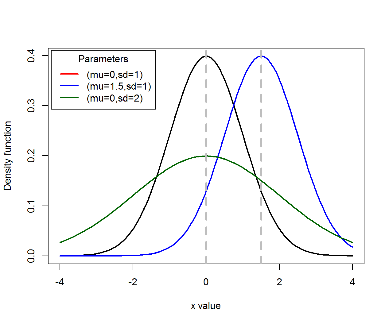 Density functions (\(\mu\) for location, \(\sigma\) for scale):