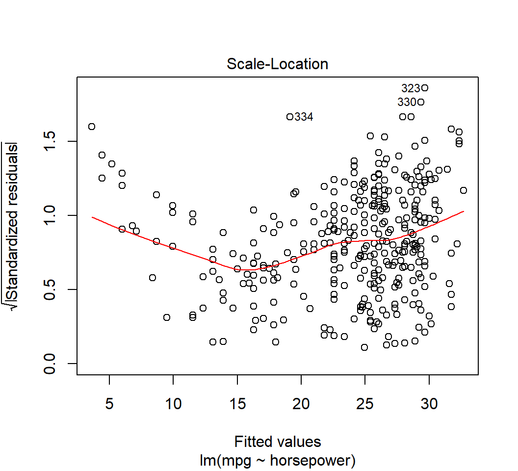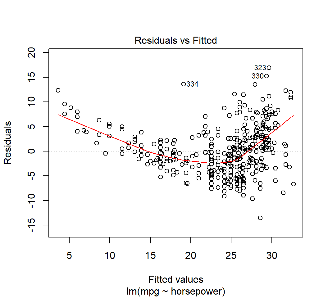 mpg) = \(\beta_0\) + \(\beta_1\) horsepowerFit2 is the object obtained from fitting the model