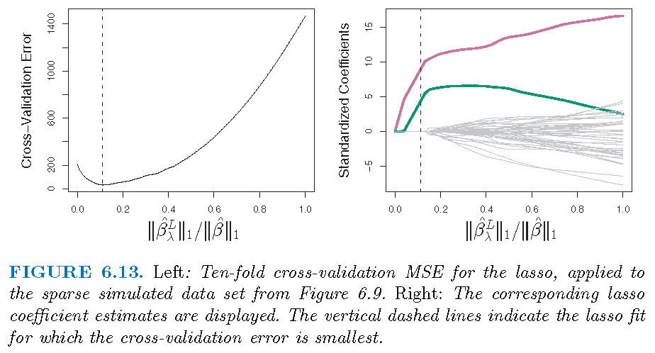 The optimal value \(\lambda^{\ast}\) of the tuning parameter \(\lambda\) is ofen determined by \(k\)-fold cross-validation: