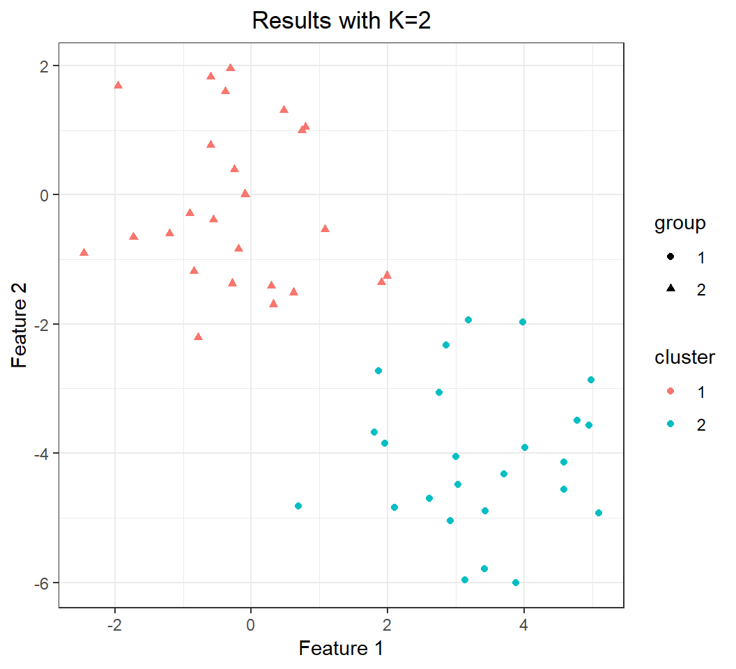 + ggtitle("Results with K=2")+theme_bw()+
