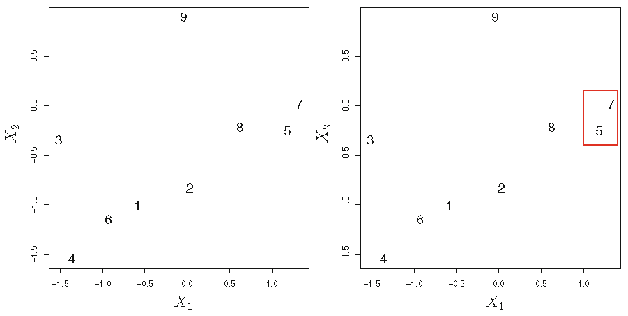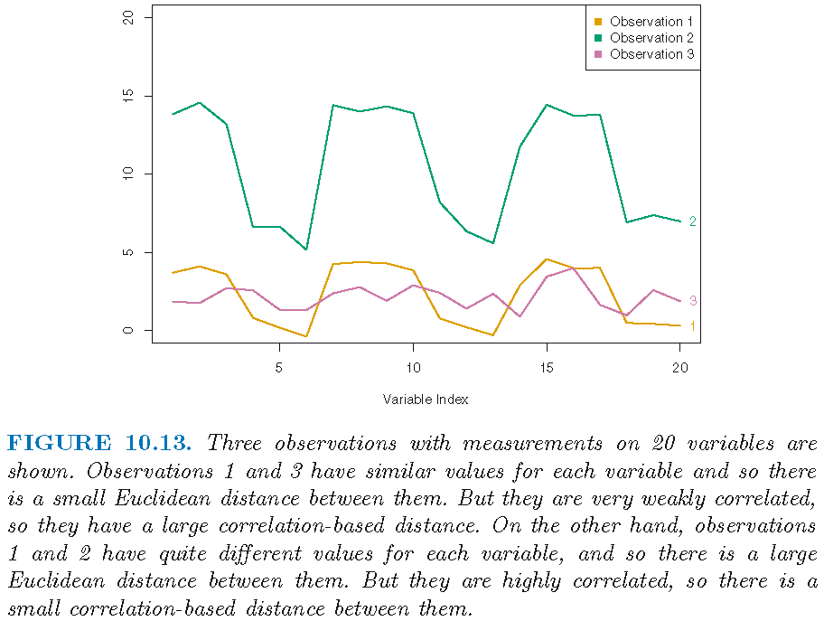We might also want to scale the variables to have standard deviation one if they are measured on different scales; otherwise, the choice of units (e.g. centimeters versus kilometers) for a particular variable will greatly affect the dissimilarity measure obtained.