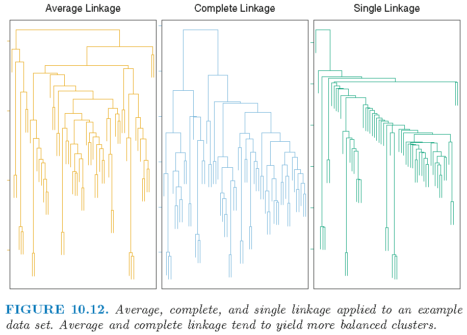 Note: Average and complete linkages are generally preferred over single linkage, since they tend to yield more balanced dendrograms