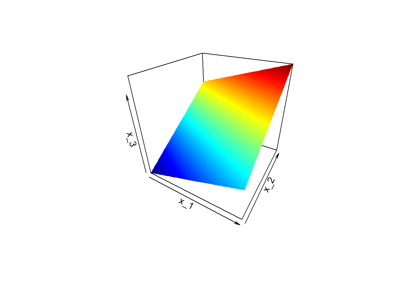 Let \(x=(x_1,x_2,\ldots,x_p)^T\) for \(x \in \mathbb{R}^p\). The definition is \[S=\left\{x \in \mathbb{R}^p: \beta_1 x_1+\beta_2 x_2+\ldots+\beta_px_p+\beta_0=0 \right\},\] where \(\sum_{j=1}^p\vert \beta_j\vert>0\); otherwise, \(S\) will have dimension less than \(p-1\)