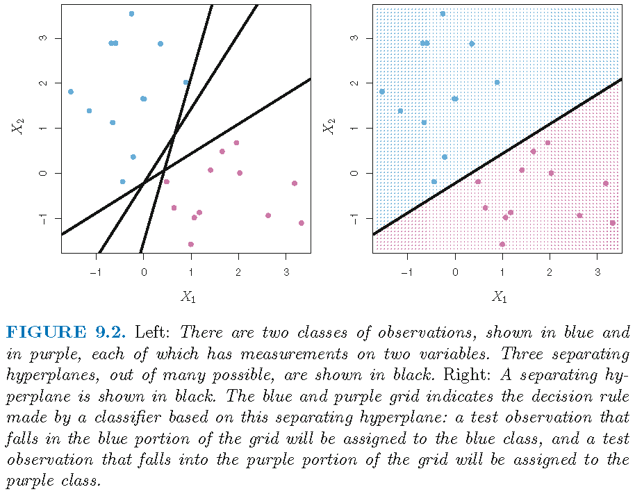For a set of observations that can be perfectly separately by a hyperplane, there can be infinitely many separating hyperplanes and hence infinitely many “hyperplane” classifiers for these observations