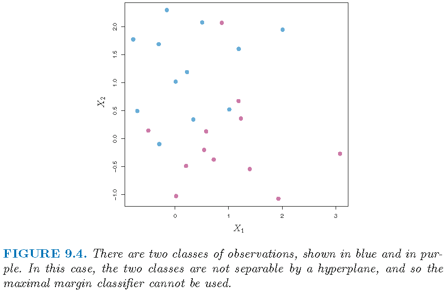 When observations cannot be perfectly separately by a hyperplane (which is called the “non-separable case”), the optimization problem for the maximal margin classifier has no solution, and the maximal margin classifier is undefined