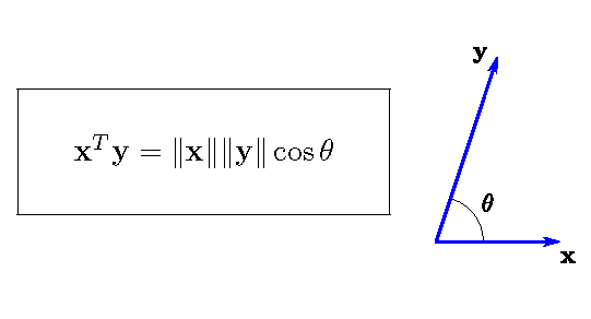 For \(\mathbf{x},\mathbf{y} \in \mathbb{R}^p\), \(\langle \mathbf{x},\mathbf{y}\rangle = \mathbf{x}^T \mathbf{y}\). So, \(\langle \mathbf{x},\mathbf{y}\rangle >0\) if \(-\pi/2<\theta < \pi/2\), and \(\langle \mathbf{x},\mathbf{y}\rangle=\cos\theta\) if \(\Vert \mathbf{x}\Vert=\Vert \mathbf{y} \Vert =1\).
