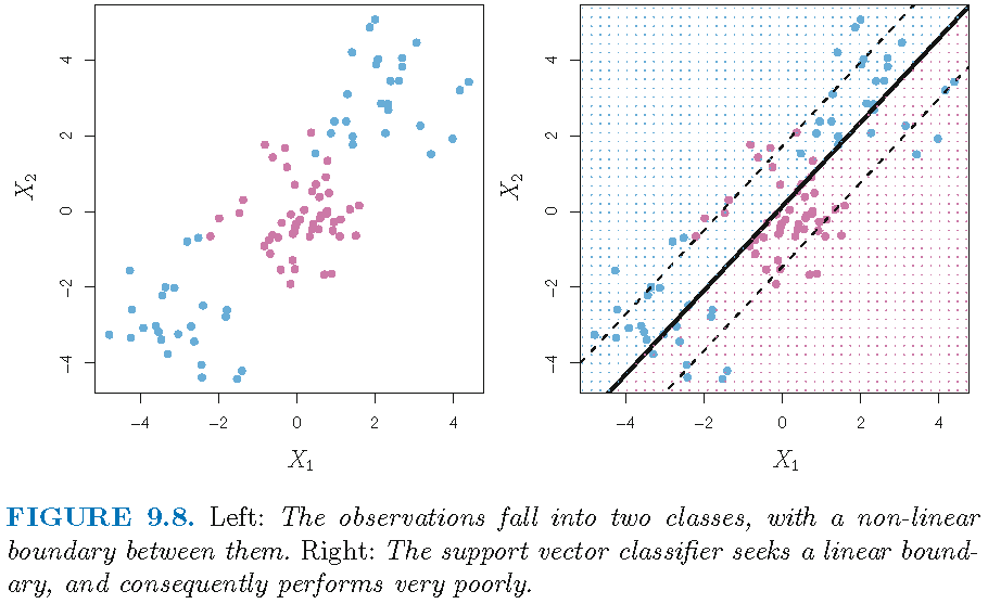 In essence, an SVM implicitly enlarges the feature space via the use of a kernel