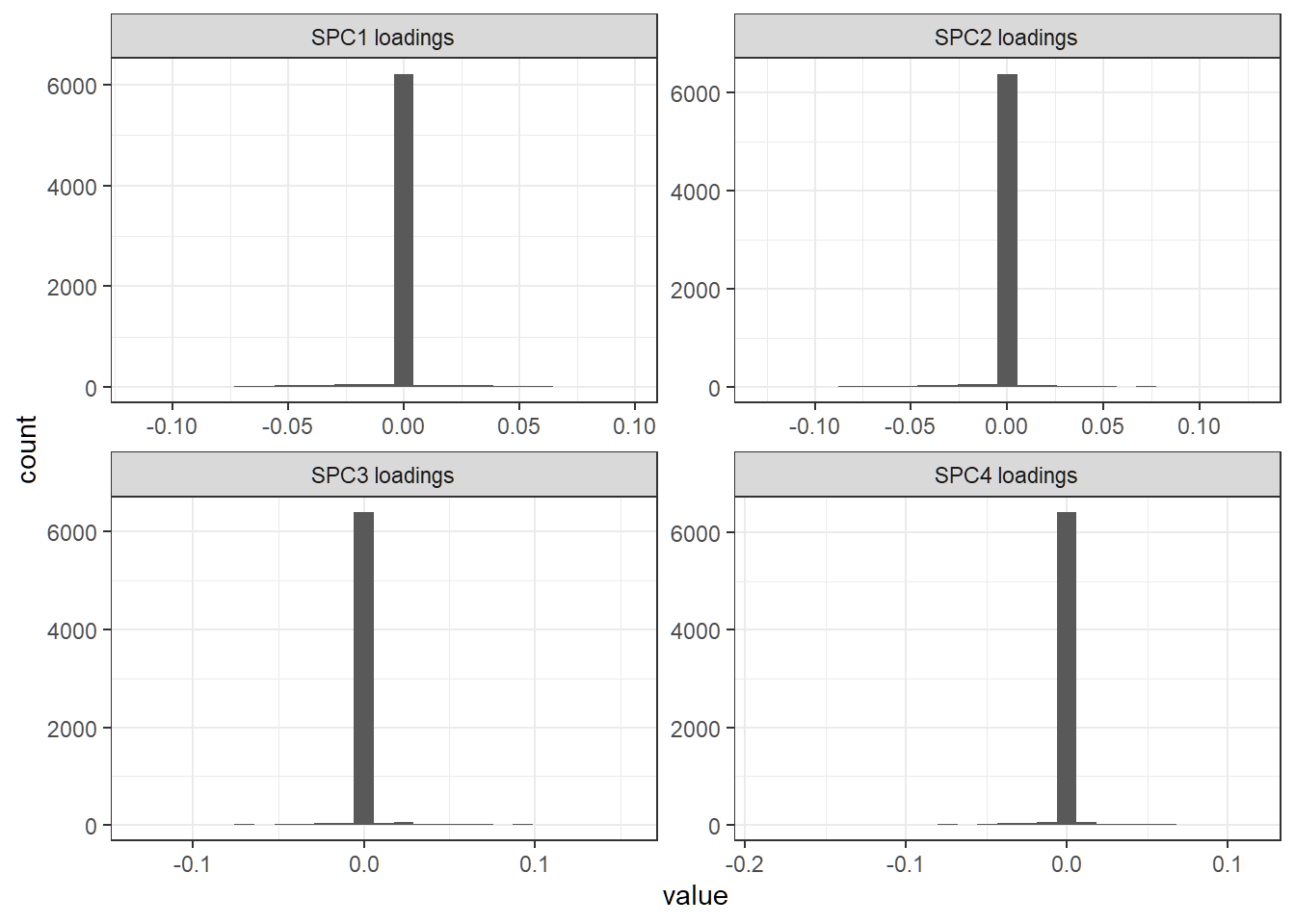 > resC =sparsepca::spca(Xsd, k=18, alpha=1e-6,beta=1e-6,