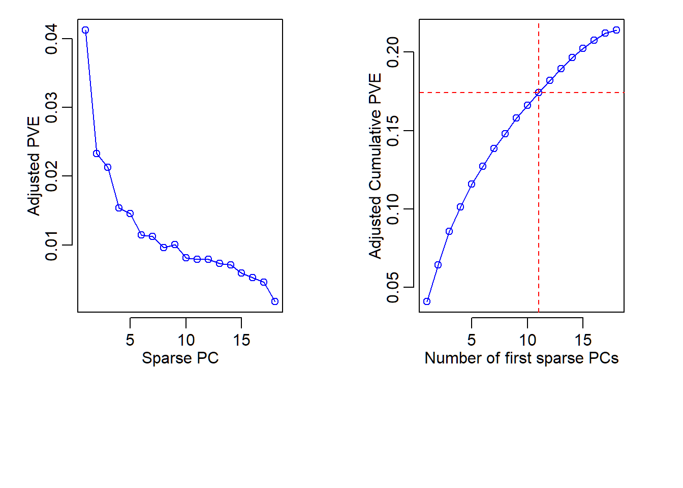 > # plot(sResB[4,],type="o",ylab="Cumulative PVE",xlab="Number of sparse PCs",col="blue")